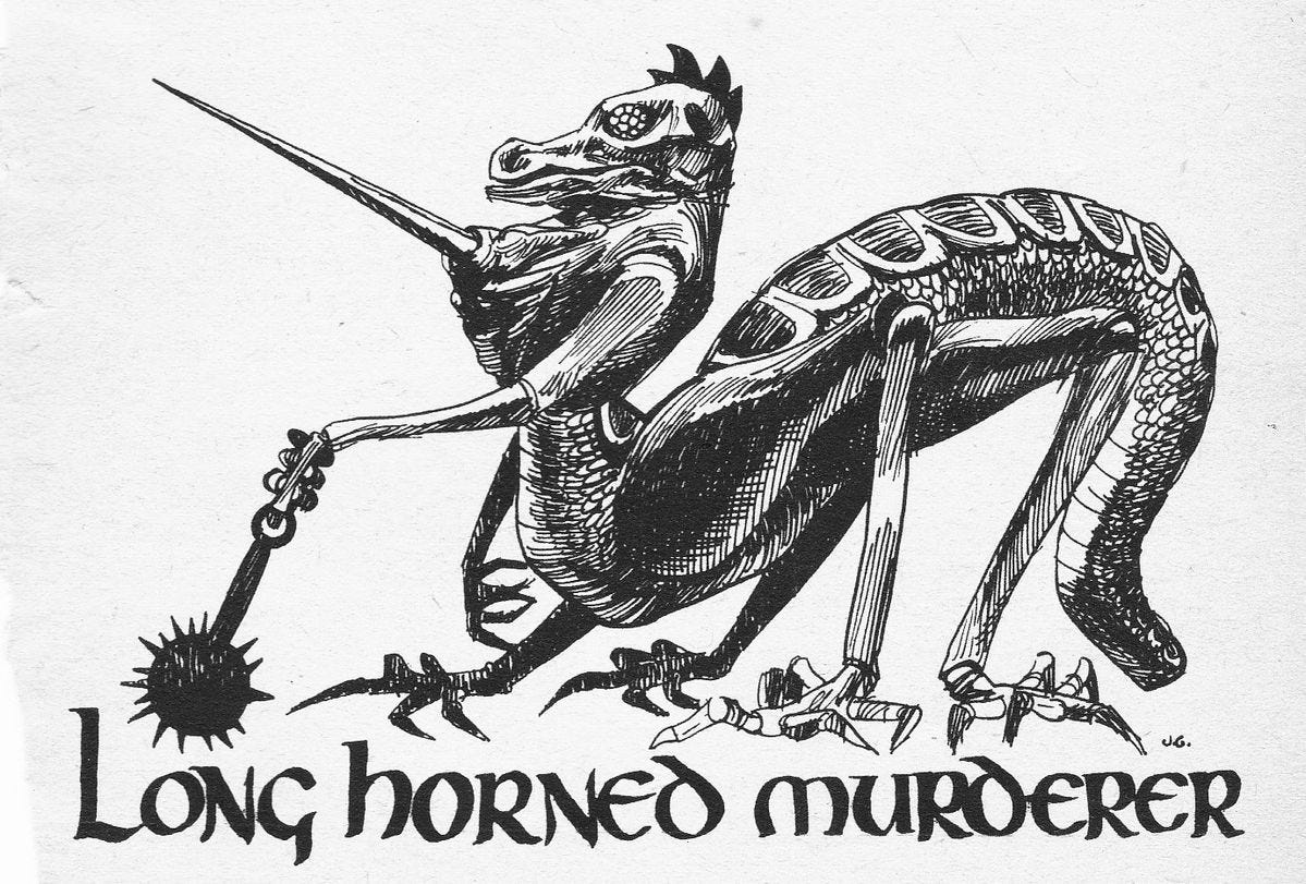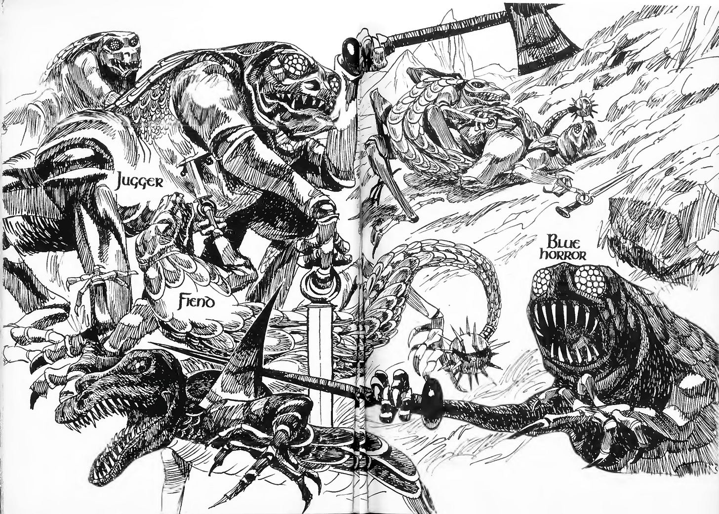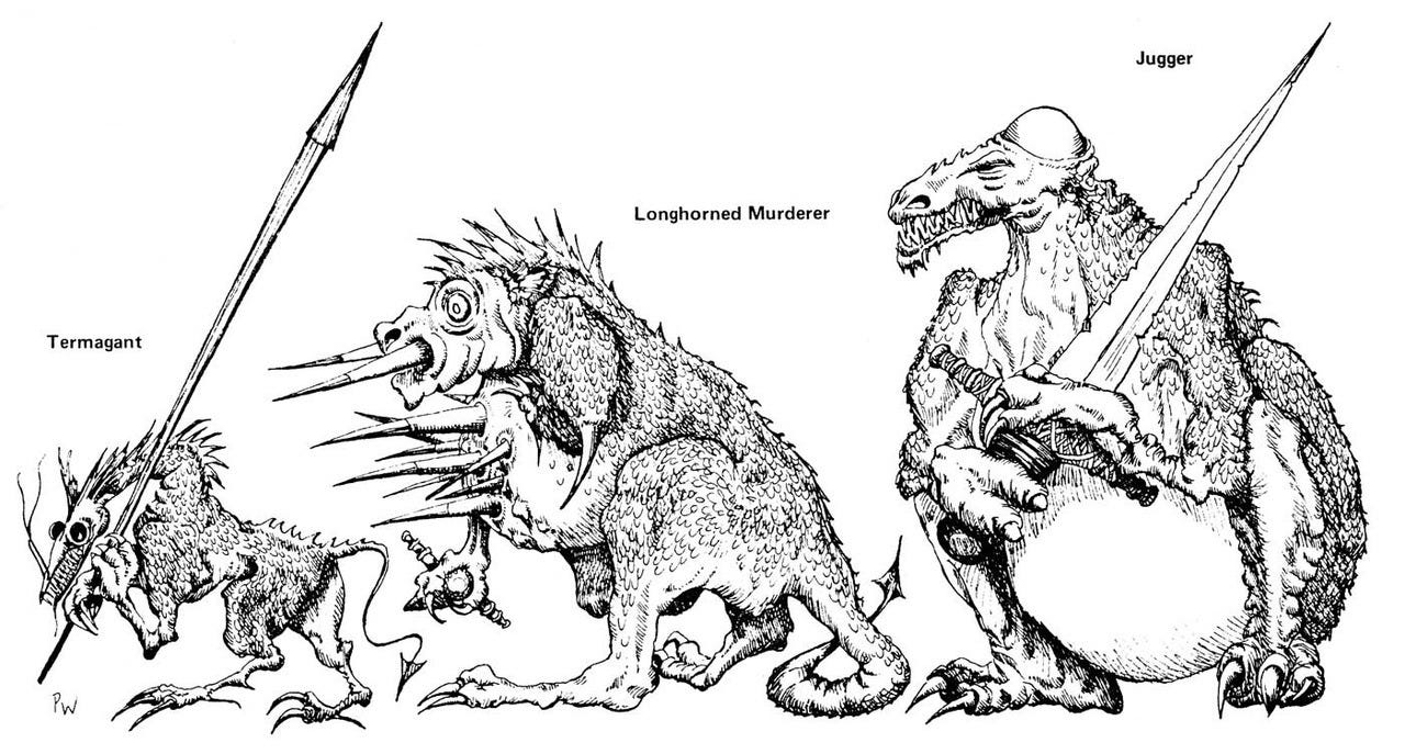 Now mankind has its own incredibly creepy alien eugenics project; the war is flesh-v-flesh, each side in a war operationalising the very being of a species as a weapon against them. If we were to do a ‘realistic’ version of this theme, it would take place over huge stretches of time; ‘blood for the morrow, steel for the day’, technology tends to govern in the moment, but flesh rules the tide. In ‘Dragon Masters’ we only get this brief fragment of consequential time, but all the lore and development and background for the book practically calls out to be turned into some kind of massive epic, RPG sourcebook or something.