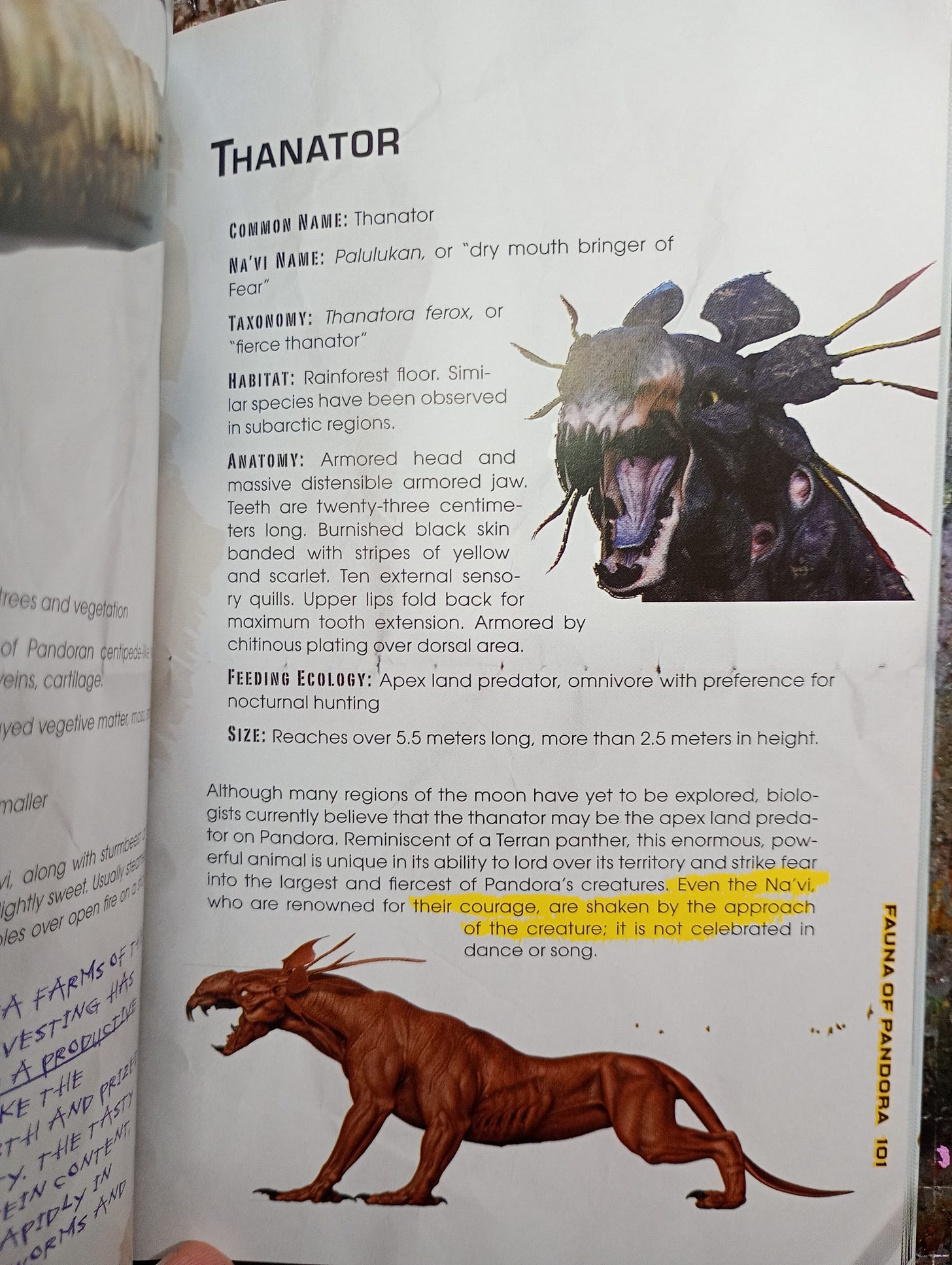 Only one part of the book actually describes Pandora, the rest being a militarist pin-up book of exciting human technology, and the Pandoran section is heavily tilted towards the kind of charismatic megafauna you can fight, and in the case of Jake Sulley, (and chud-king Mile Quaritch), fuck. We will go to space and we will have sex with those aliens.