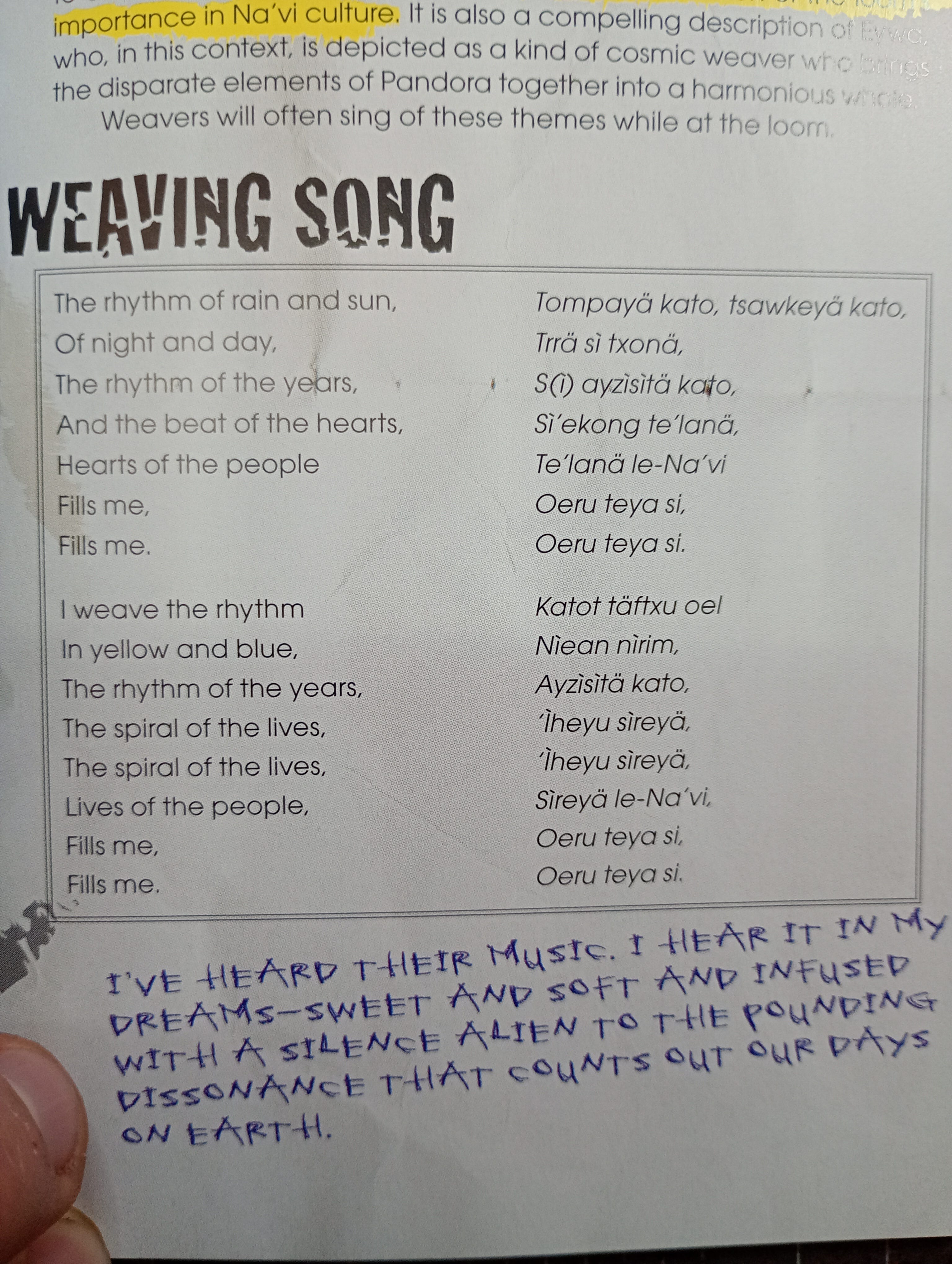 All in all an excellent example of detailed (relatively) hard sci-fi worldbuilding. Superluminal communications and an apparent ‘psionic’ element to the Avatar link are almost the only soft science elements of this otherwise hard sci-fi world. The enormous focus dedicated to Na’vi textiles, tools and crafts is impressive.