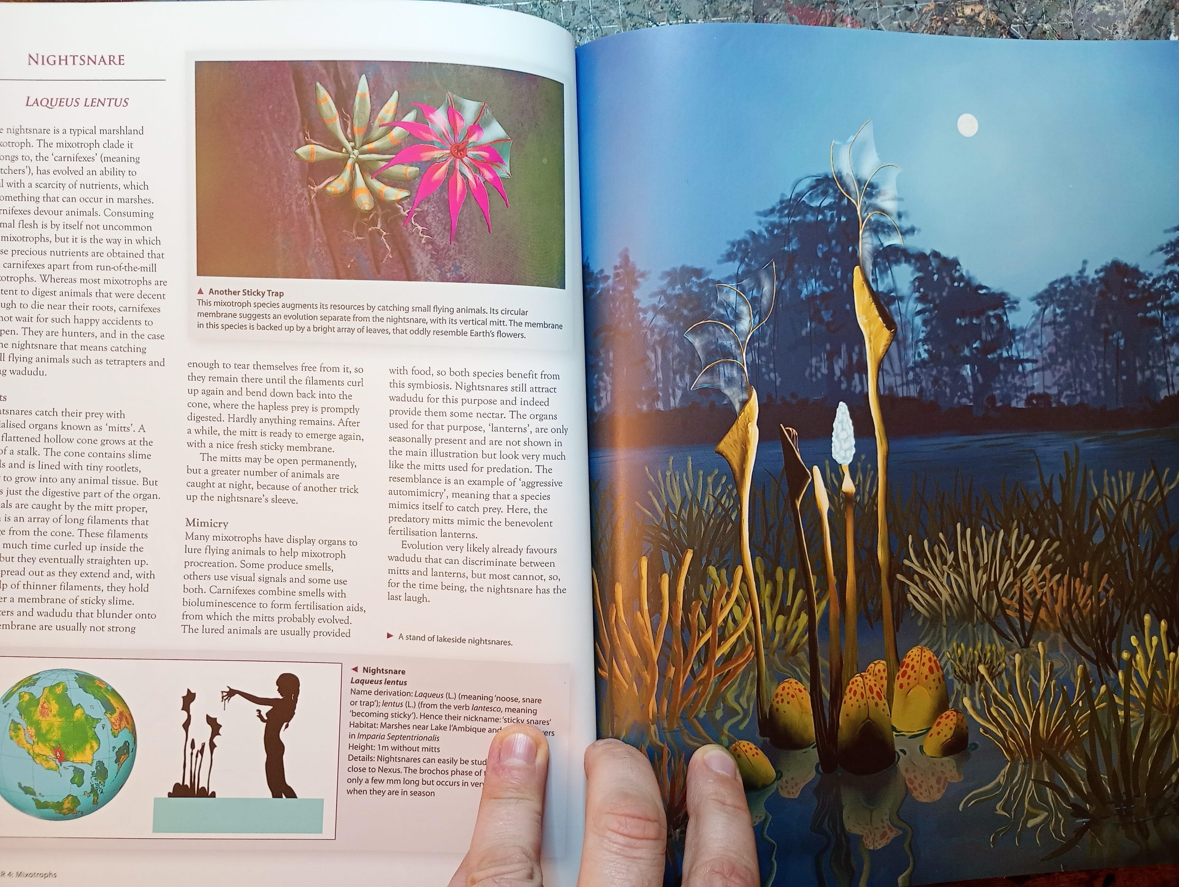 ‘Furaha’ is an imaginary world, it has a blog, and even a Youtube channel for everyone who was super-interested in the exact biomechanics of radially symmetrical space bugs. Now it exists as a book from Crowood press “A speculative biology guide to alien life forms.” And unlike every other entry on this list, the biosphere is not a stage, or a tool, theme or part of any other story, world or fiction; it exists for itself and for the pleasure of itself; world creation as an act of pure joy. Crystalline, jewel-like. A planet not to have adventures on. (Unless they are careful, scientific adventures).