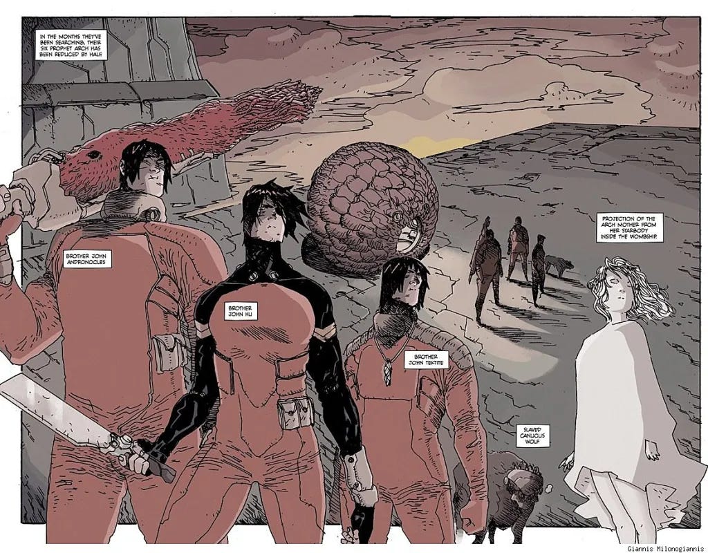 It’s almost a perfect conceit, you can truly do anything with it, and it plays to the strengths of the creators in world creation and wild imagination, but can go almost anywhere, while remaining comprehensible to new readers. You always know what is going on; John Prophet has a mission, and you never know where he is, what’s going to happen or entirely how he will respond. You also don’t know where the story will end.