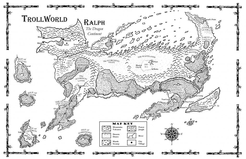 I feel like getting rid of this (slight) silliness and trying to make the setting and the game answer more ‘normie’ Fantasy questions actually ruins it. The absence of tangles and argument is just an effect I can describe of a cause it’s hard to define; it is the spirit of the game. It’s why the Dragon continent is shaped like a Dragon and (should still be) called ‘Ralph’. If you don’t like the idea of running, or playing on, a ‘Dragon Continent’ shaped like a Dragon, and called ‘Ralph’, or of a Skeleton teaming up with a Dwarf, a Vampire and an Elf, then the game has done its job.