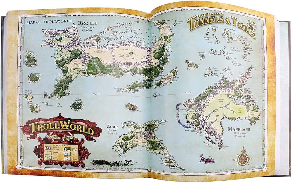 This is also built into the nutty world-creation of ‘Tunnels and Trolls; Trollworld is literally built on wizards. Or at least, huge numbers of whacky wizards have inhabited it over time, burrowed into its crust and disappeared under the earth, building their own strange ‘magical realms’, which form the nuclei of, one would assume, huge tunnel complexes. In in-world history is literally ‘a wizard did it’. Gonzo dungeon design is the actual geology of Trollworld. Gonzo, or a Toybox, or very ‘Dungeony’ gamified non-naturalistic dungeons work well with this ruleset and play experience. It’s not a ‘flat’ game, either in its aesthetic, or the probability curves that underlie it. I am not sure if its modern re-creators have grasped this.